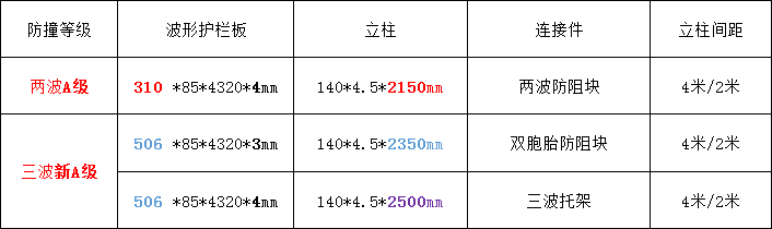 兩種A級(jí)波形護(hù)欄規(guī)格對(duì)比如下: