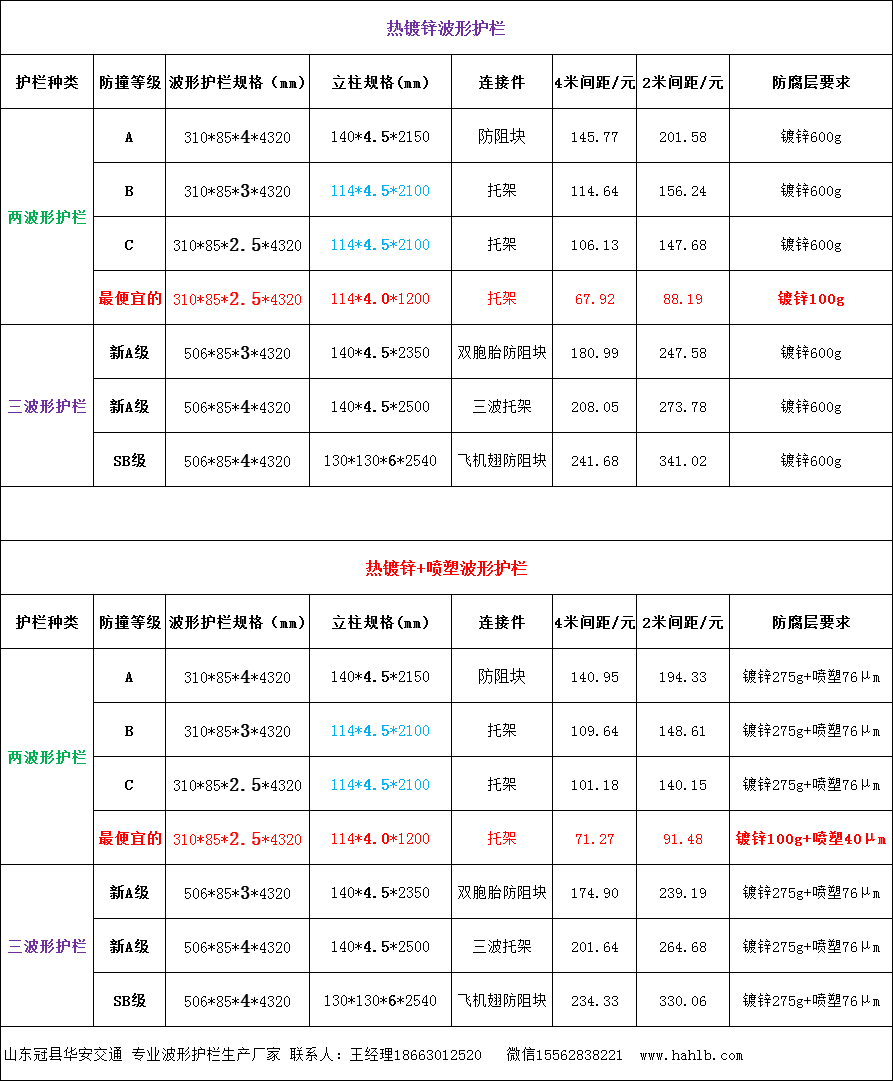 以上價格均為波形護(hù)欄材料出廠價格,不包含運(yùn)費(fèi)及稅票。因鋼材市場價格波動較為頻繁,僅供參考。具體價格需要結(jié)合您提供的詳細(xì)規(guī)格或圖紙進(jìn)行計算。更多波形護(hù)欄資訊及實時報價請多多關(guān)注山東冠縣華安交通!保證同等質(zhì)量價格最低!