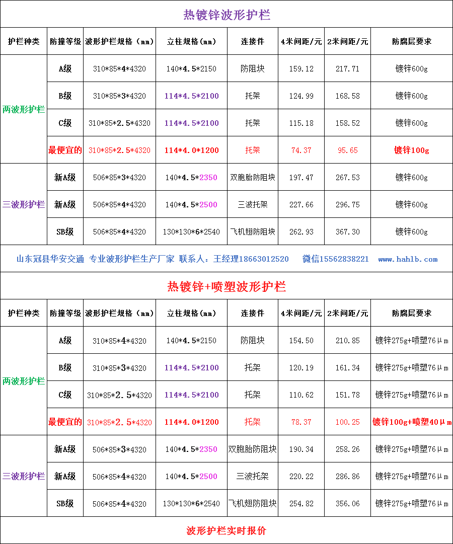 波形護欄價格隨鋼材市場價格上下浮動,近期鋼材現貨價格寬幅調整,波動較大,有波形護欄材料方面的需要可以關注山東冠縣華安交通,隨時了解波形護欄價格情況,免費為您提供報價,保證同等質量最低價格!