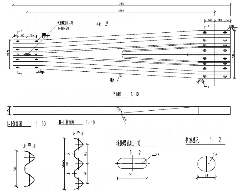 波形護欄過渡板是指在一些特殊的路段,需要同時使用雙波形護欄和三波形護欄時,可以使不同規(guī)格的梁板連接在一起,能夠流暢過渡的特殊護欄板。而雙波護欄和三波護欄的截面是不一樣的,在這種情況下就需要使用一種規(guī)格為(506-310)85*4320*3/4mm或(506-310)85*2320*3/4mm的過渡板。