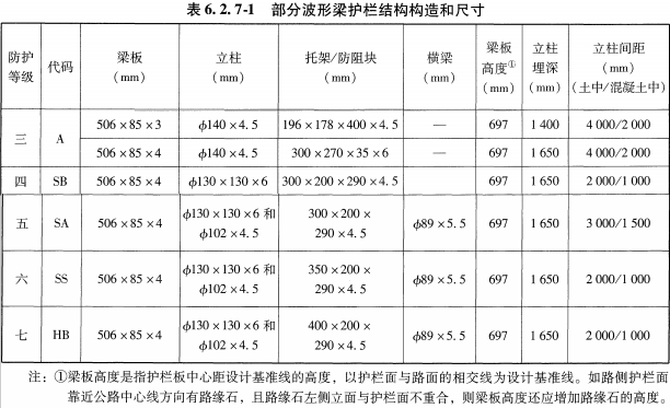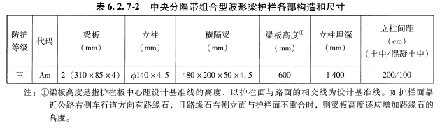 1)組合型波形梁護欄規格和尺寸應符合下表的規定: