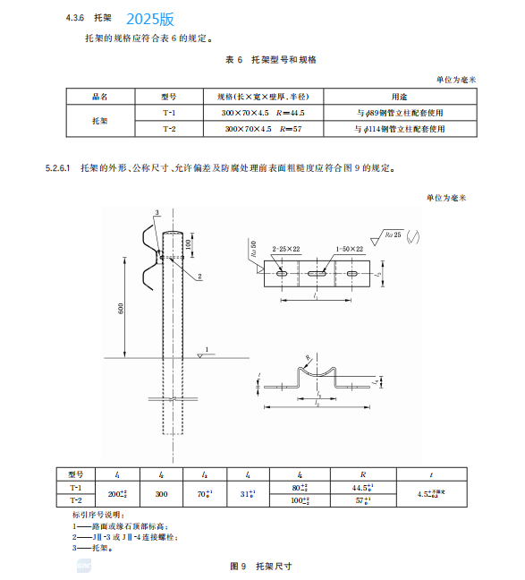 j) 增加了 2.0 mm 厚和 2.5 mm 厚兩波形梁板的最小厚度和平均厚度要求、中部連接螺孔數(shù)量應(yīng)根據(jù)鋼管立柱間距設(shè)置的要求(見 5.2.1.1、5.2.1.2);