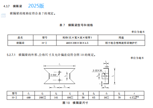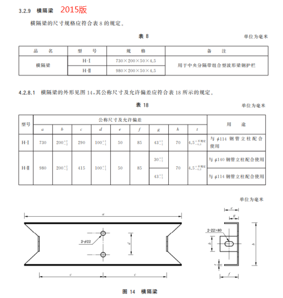 h) 更 改 了 橫 隔 梁 的 用 途 、規(guī) 格 和 公 稱 尺 寸 及 允 許 偏 差(見 4.3.7、5.2.7.1,2015 年 版 的 3.2.9、4.2.8.1);