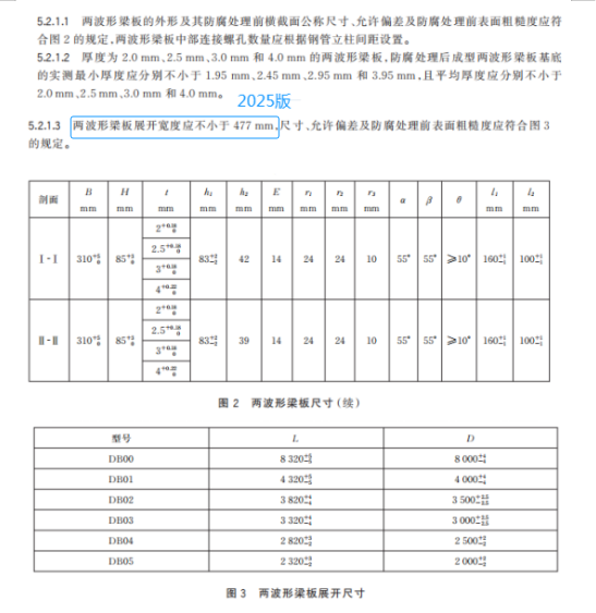k) 更改了兩波形梁板外形圖、橫截面公稱尺寸、展開尺寸及允許偏差(見 5.2.1.1~5.2.1.3,2015 版的 4.2.1.1、4.2.1.2);
