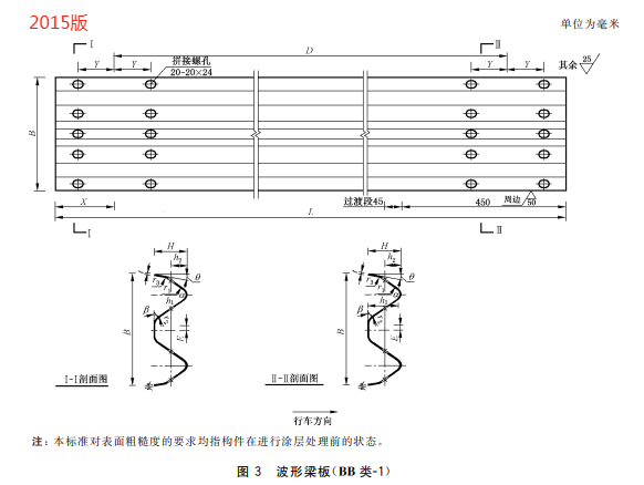 l) 刪除了變截面兩波形梁板的外形圖及加工要求(見 2015 年版的圖 3、圖 4 和 4.4.2);