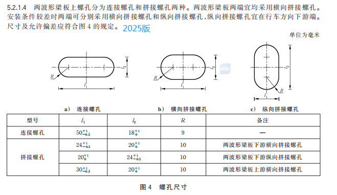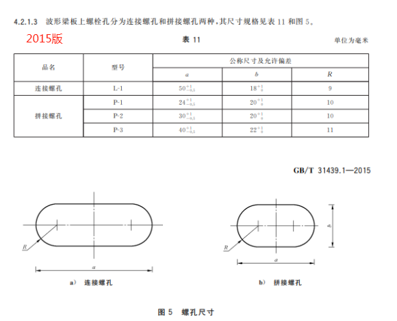 m) 更改了兩波形梁板螺孔規(guī)格(見 5.2.1.4,2015 年版的 4.2.1.3);