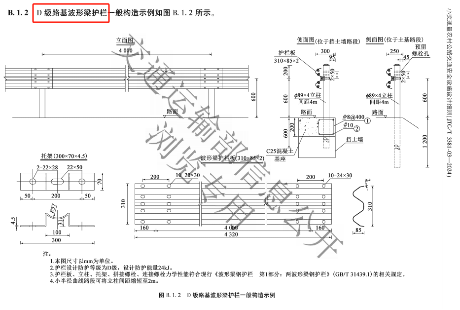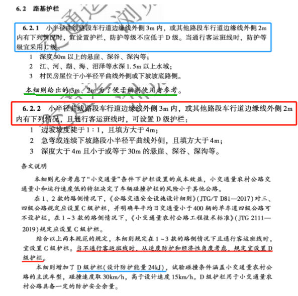 C級(jí)和D級(jí)波形護(hù)欄都可以運(yùn)用在鄉(xiāng)村公路的安全防護(hù)中,D級(jí)護(hù)欄具體的在什么情況下使用,在《小交通量農(nóng)村公路交通安全設(shè)施設(shè)計(jì)細(xì)則(JTG/T 3381-03-2024)》中也說(shuō)的非常詳細(xì):